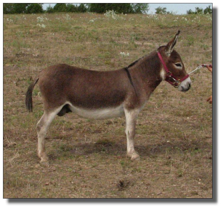 Blaze is a very dark sorrel jack with a gorgeous and beautiful full rump, pretty little head, and a stocky build. He is only 30.5", and has that desired color. We can't wait to see his babies!